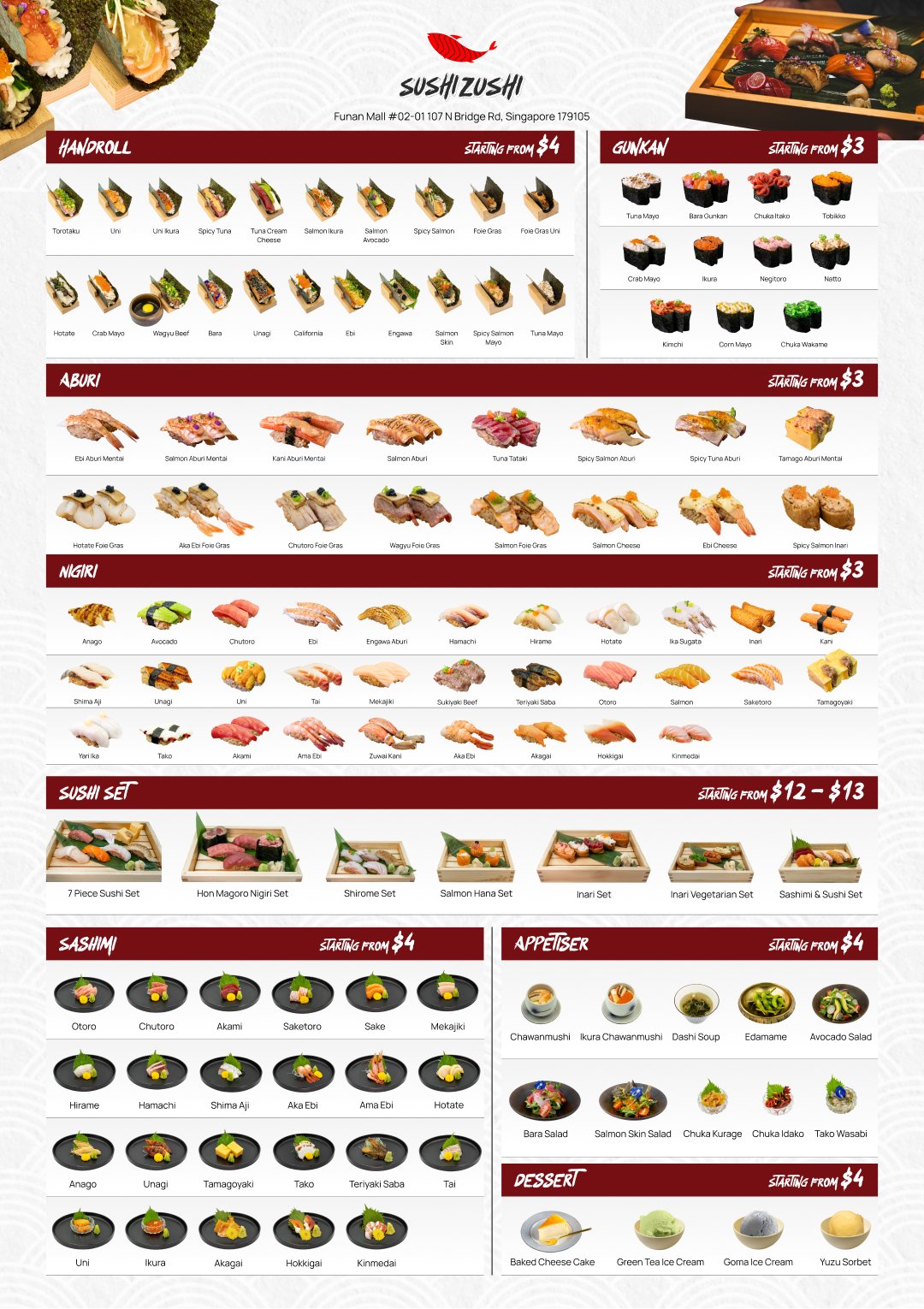 At Sushi Zushi, we pride ourselves on a diverse menu that caters to every sushi lover’s cravings. Our carefully curated selections feature a variety of fresh and flavourful options